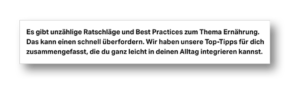 Damit Nutzer*innen auf den ersten Blick verstehen, welches Bedürfnis sie beim Konsumieren deiner Inhalte erfüllt bekommen, solltest du schon in der Überschrift der jeweiligen Landing-Page, Produktpage und Co. den erwarteten Mehrwert kommunizieren.