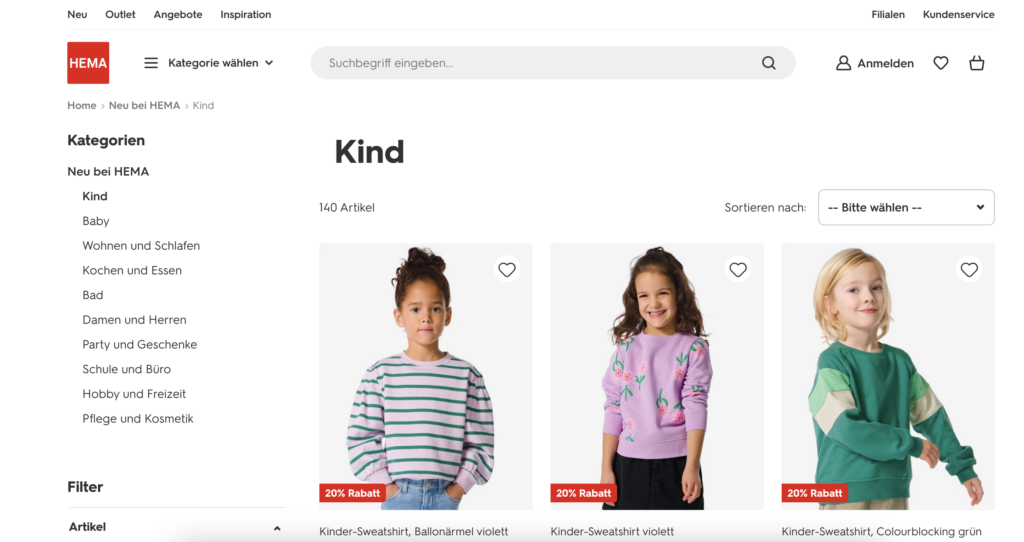 (Quelle: Screenshot Website HEMA, abgerufen am 22. Januar 2024)