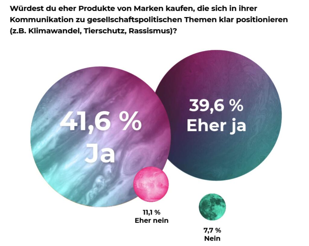 Mehr als 80 % der befragten Gen Zler würden Produkte eher von Marken kaufen, die sich zu gesellschaftspolitischen Themen positionieren.